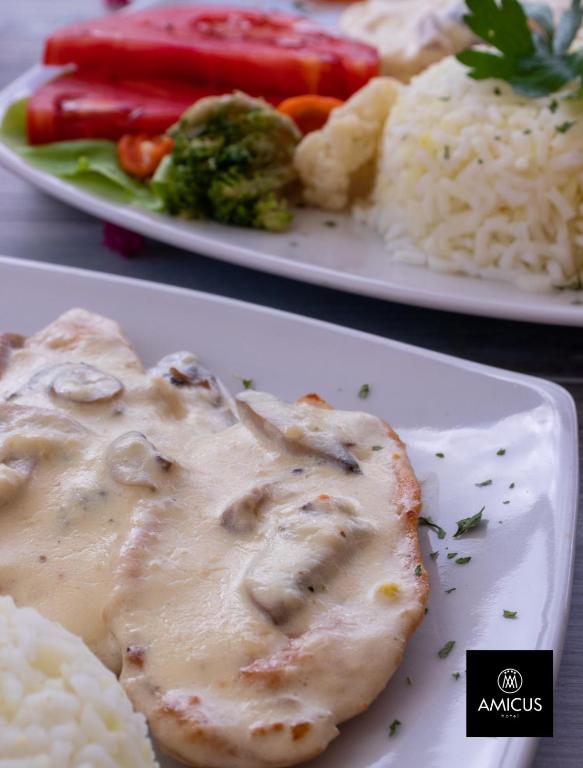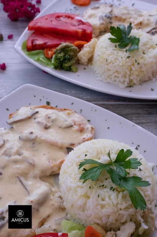 Guests can enjoy all meals at Hotel Amicus, priced at €4.42, €7.07, and €8.84 per guest.
