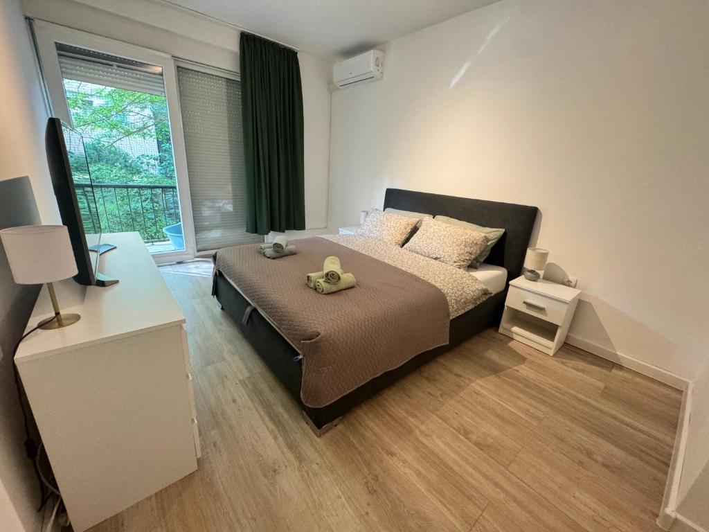 In the well-equipped kitchen, guests will find a refrigerator, a dishwasher, kitchenware and an oven. The spacious air-conditioned apartment offers a flat-screen TV with satellite channels, a washing machine, a seating area, a dining area as well as garden views. The unit has 6 beds.
